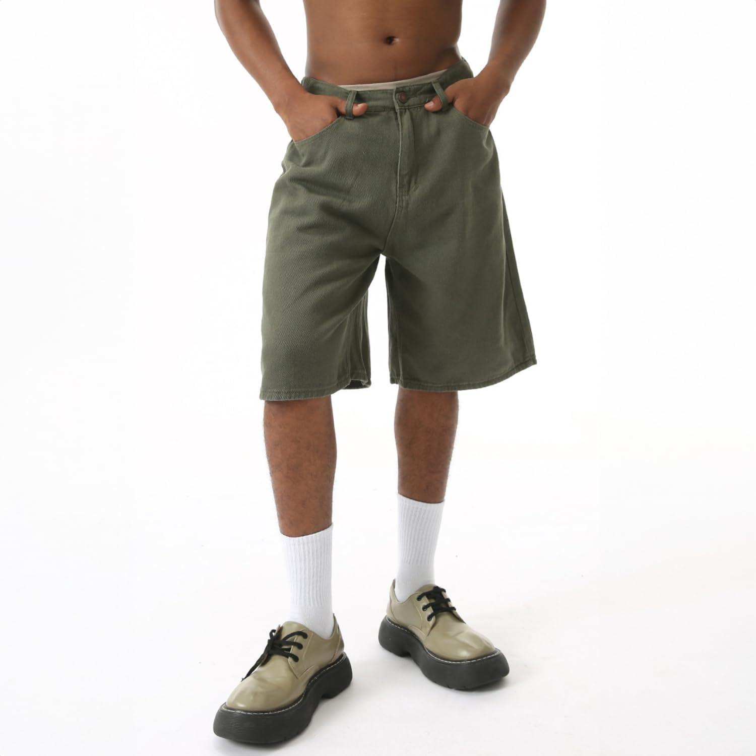 EMMIOL Mens Baggy Jean Shorts Loose Fit Denim Shorts Men Summer Casual Jorts Y2k Hip Hop Short Jeans Streetwear Clothes(Army Green)