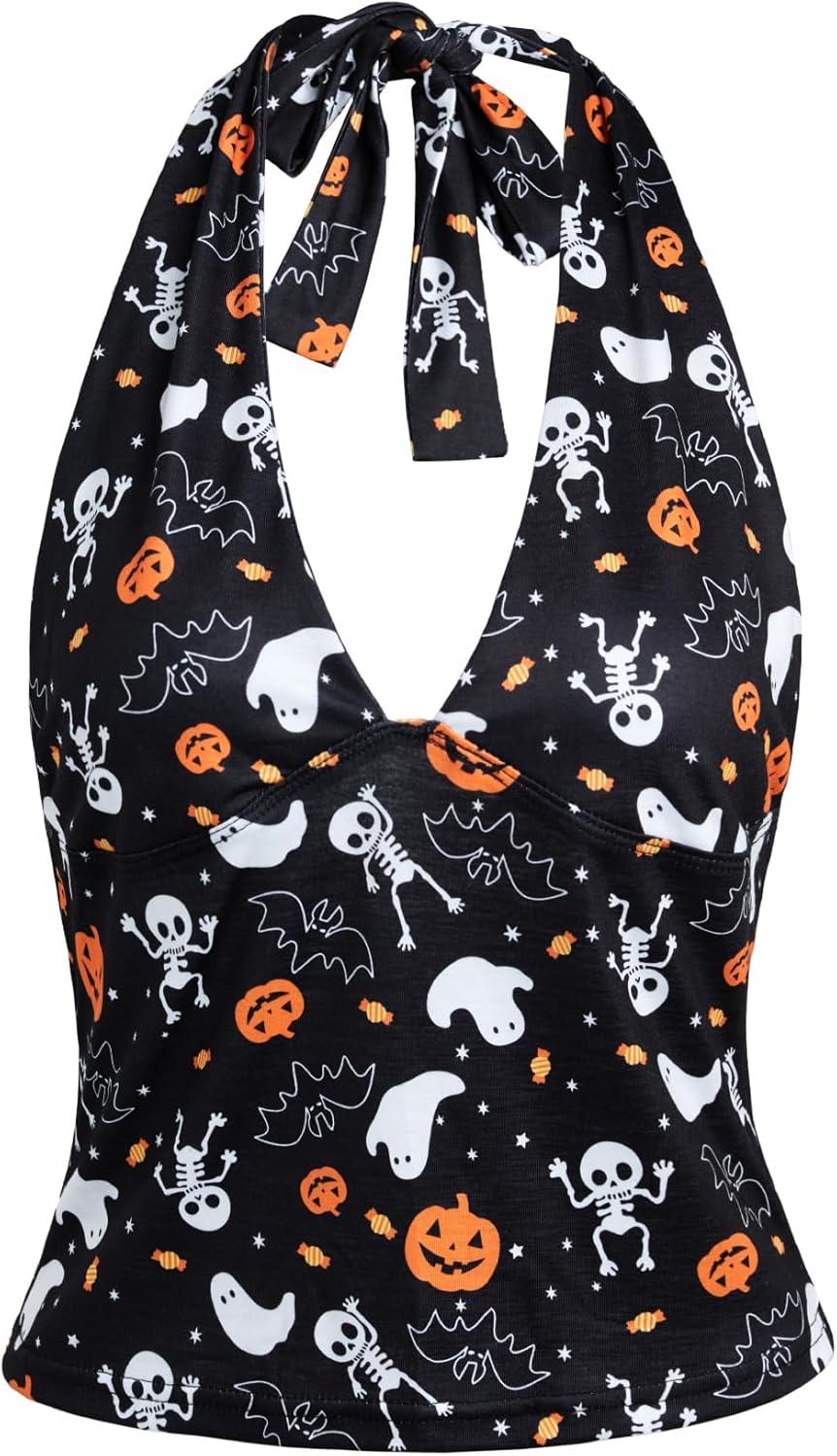Halter Tops for Women Summer Crop Deep V Neck Blackless Tank Top Going Out Y2k Coquette Clothes White Cherry