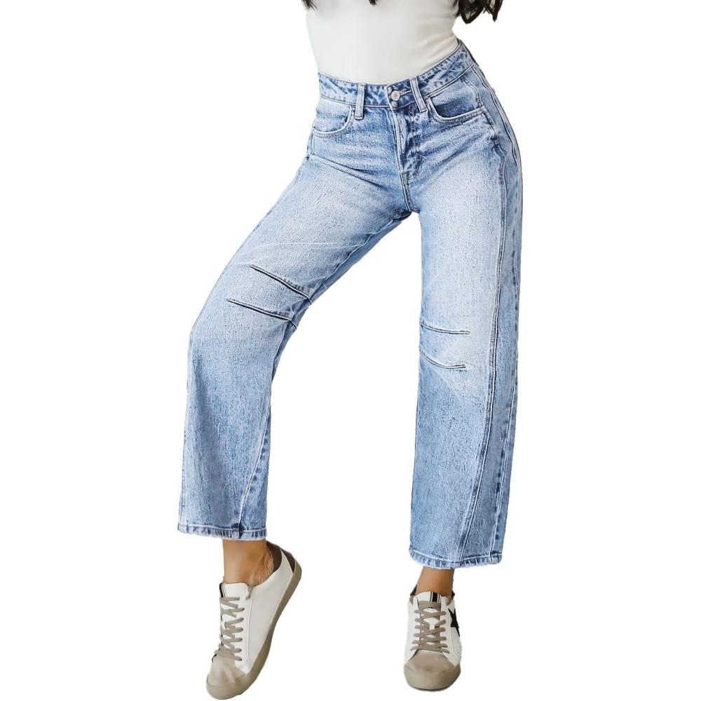 EIMMOL Straight Leg Jeans for Women Fall Fashion Cropped Mid-Rise Boyfriend Micro Stretchy Denim Ankle Pants(Light Blue)