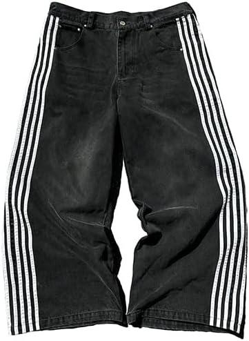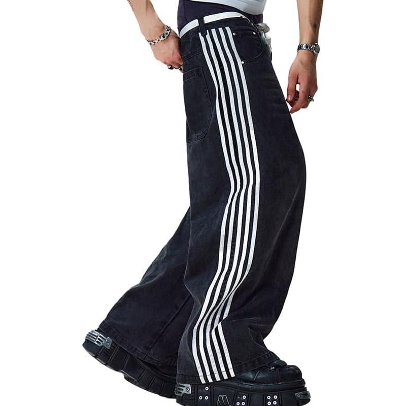 EMMIOL Baggy Jeans Men Wide Leg Oversized, Striped Denim Pants Y2K Skater Loose Fit Straight Leg Streetwear(Black)