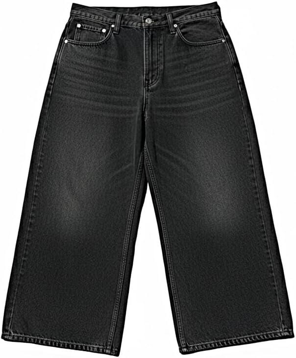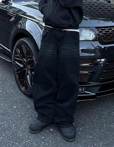 EMMIOL Baggy Jeans Men Wide Leg Oversized, Striped Denim Pants Y2K Skater Loose Fit Straight Leg Streetwear(Black+non-striped)