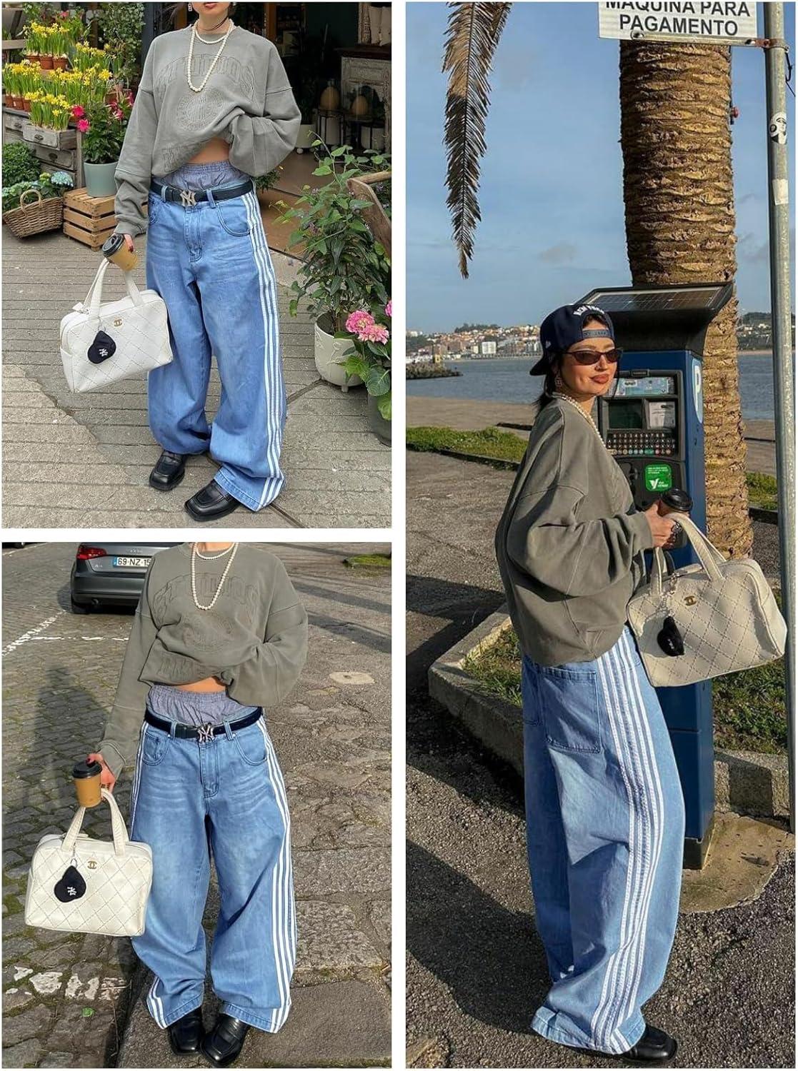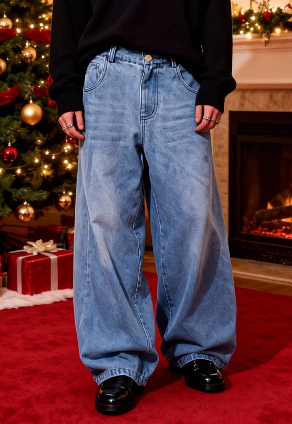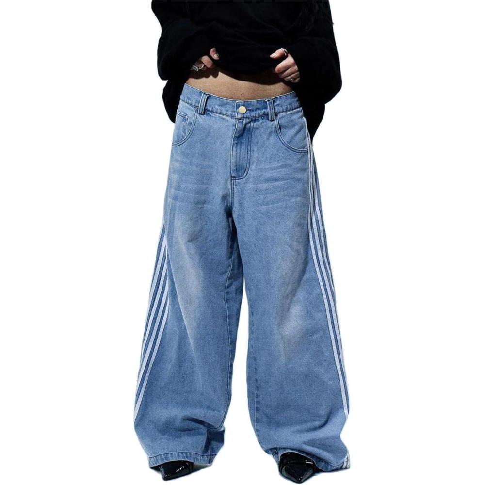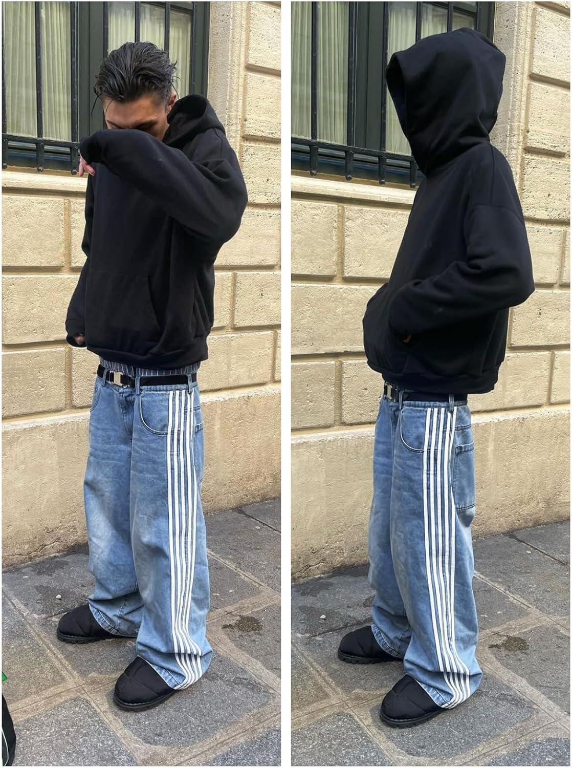 EMMIOL Baggy Jeans Men Wide Leg Oversized, Striped Denim Pants Y2K Skater Loose Fit Straight Leg Streetwear(Blue)
