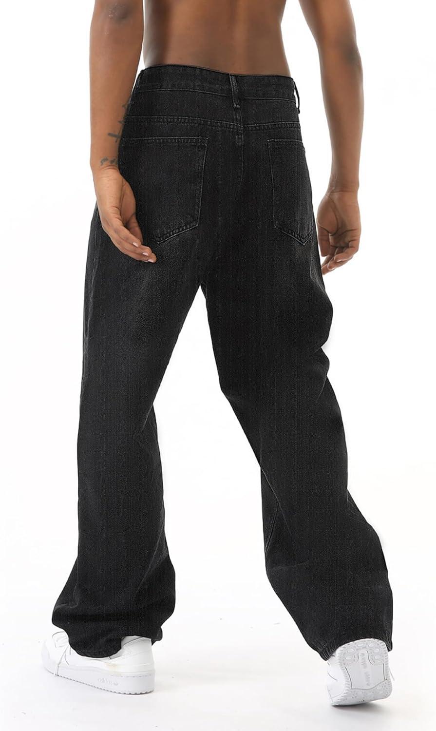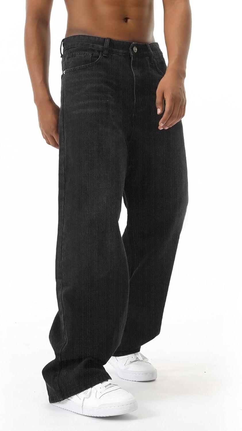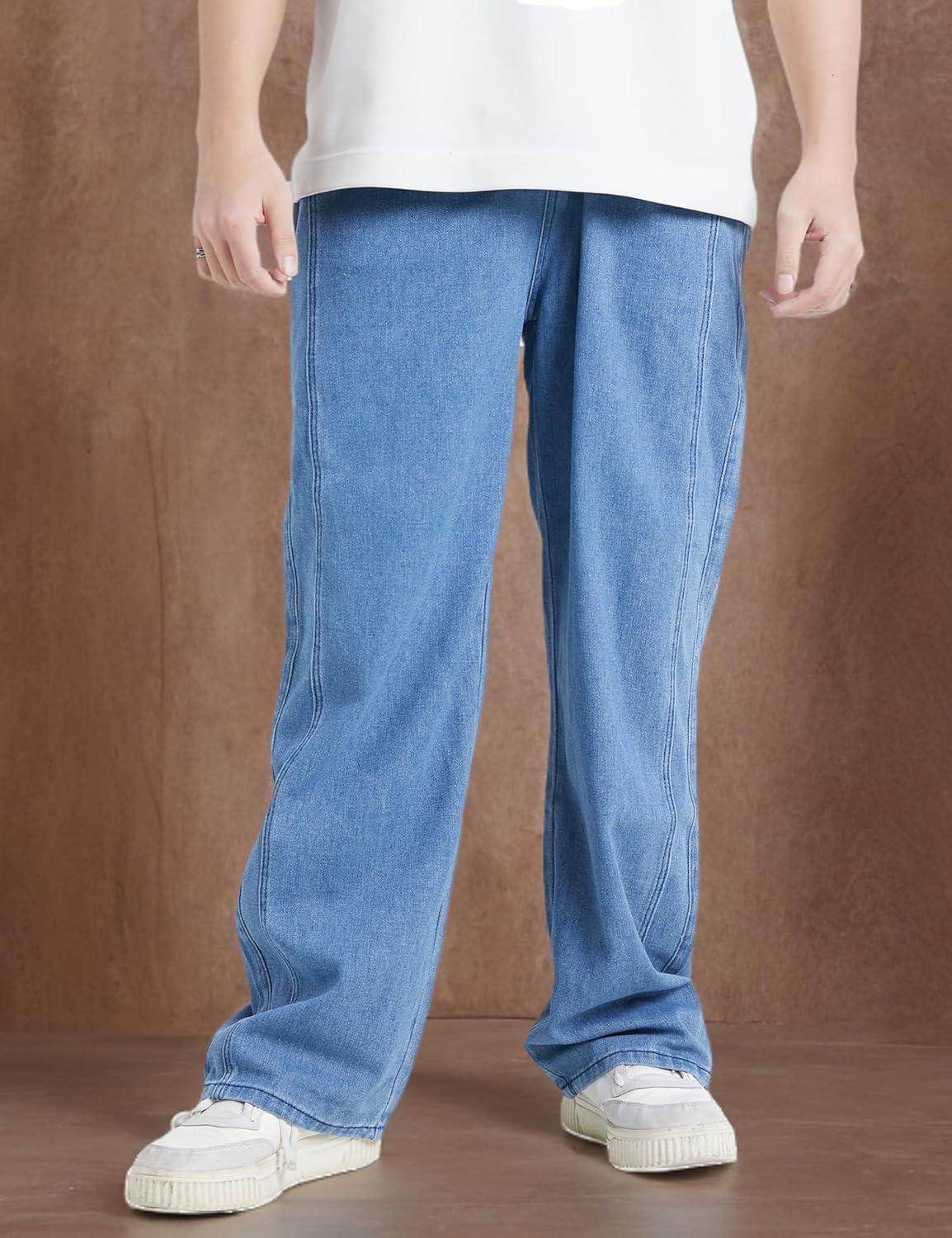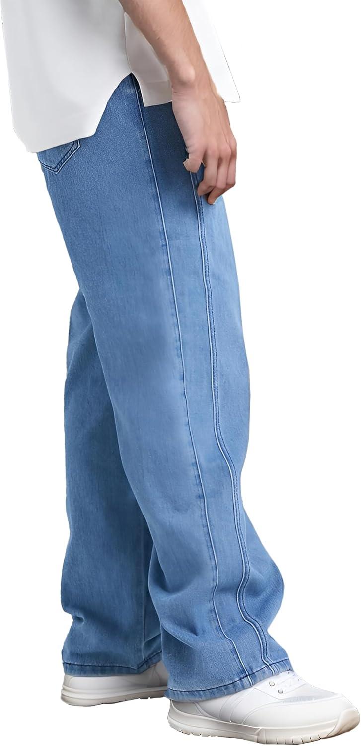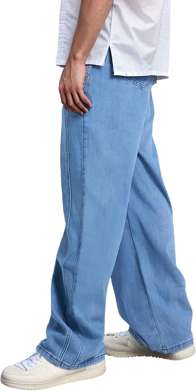 EMMIOL Baggy Jeans Men Wide Leg,Y2k Hip Hop Skater Denim Cargo Pants Casual Loose Fit,Relaxed Long Trousers(Blue)