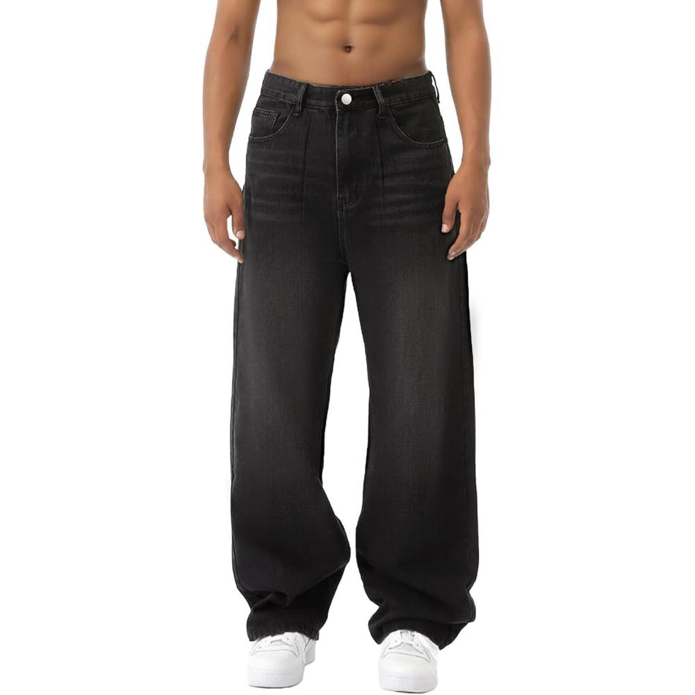 EMMIOL Baggy Jeans Men,y2k Jeans Cargo Design Wide Leg Loose Fit,Mens Denim Pants Vintage Skater Streetwear Relaxed(Black)