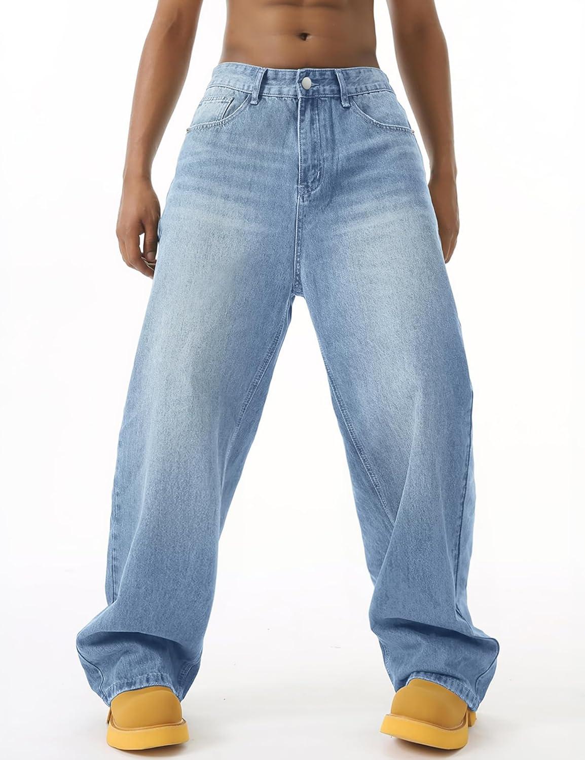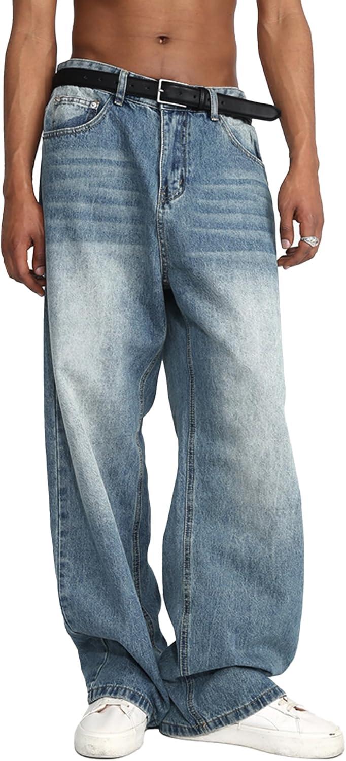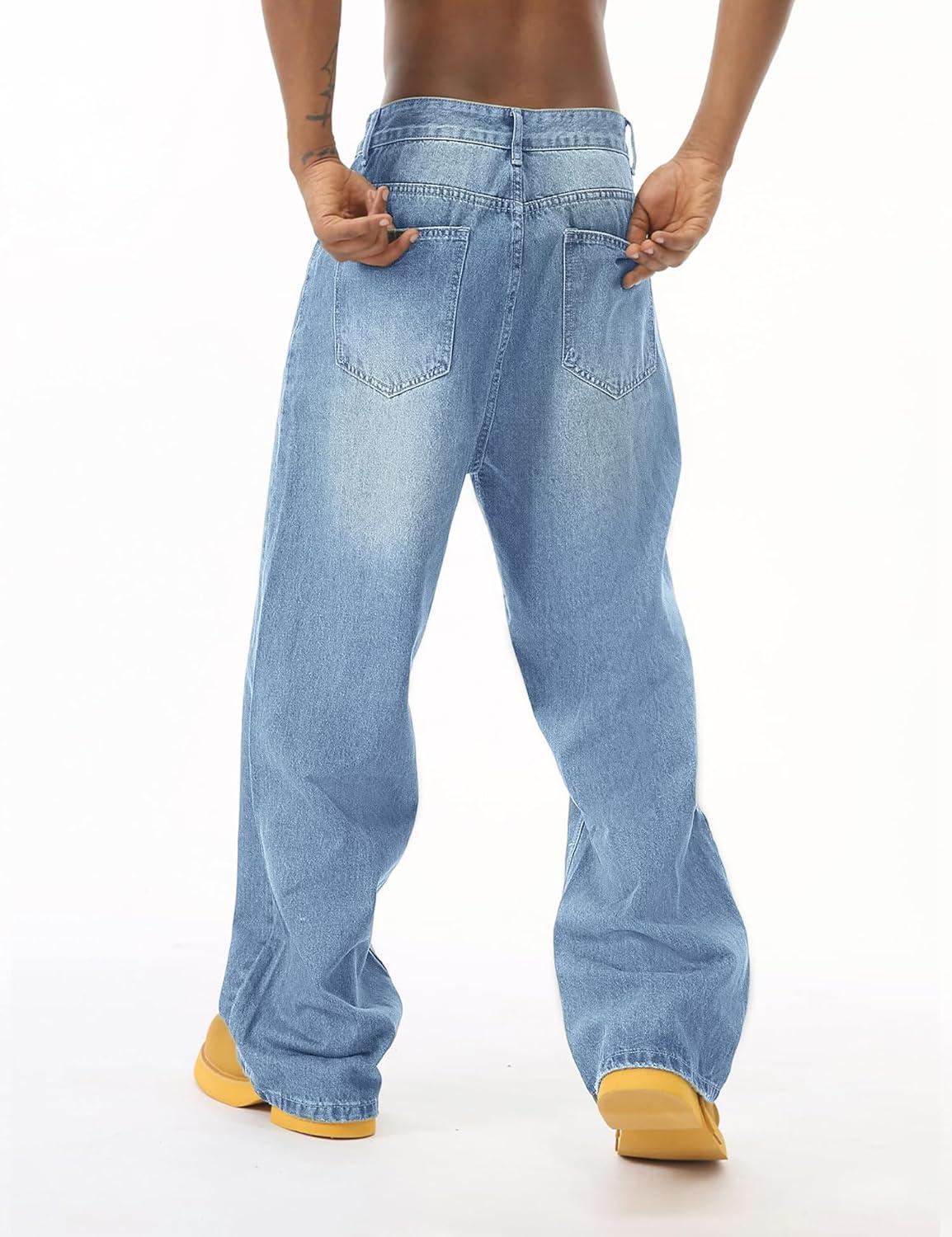 EMMIOL Baggy Jeans Men,y2k Jeans Cargo Design Wide Leg Loose Fit,Mens Denim Pants Vintage Skater Streetwear Relaxed(Lake Blue)