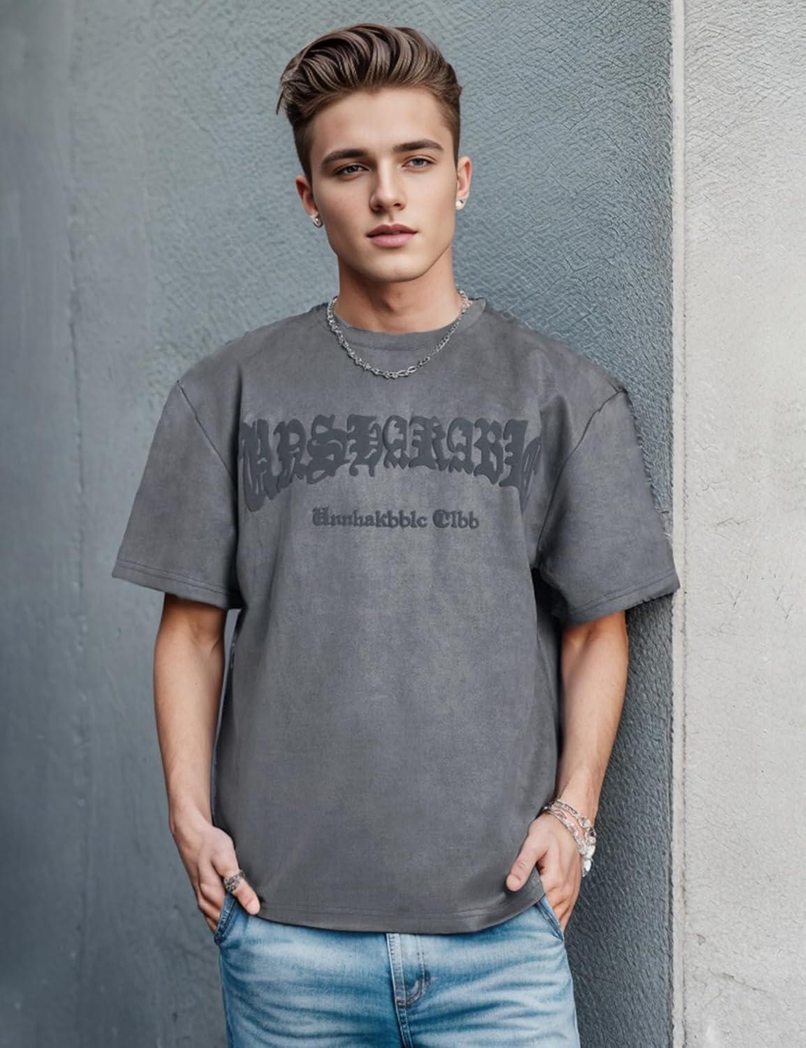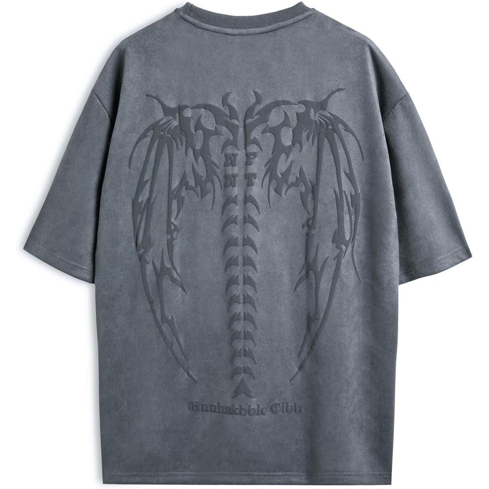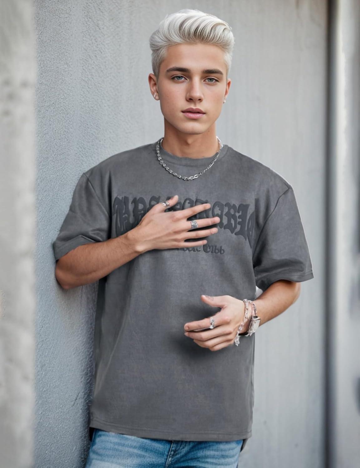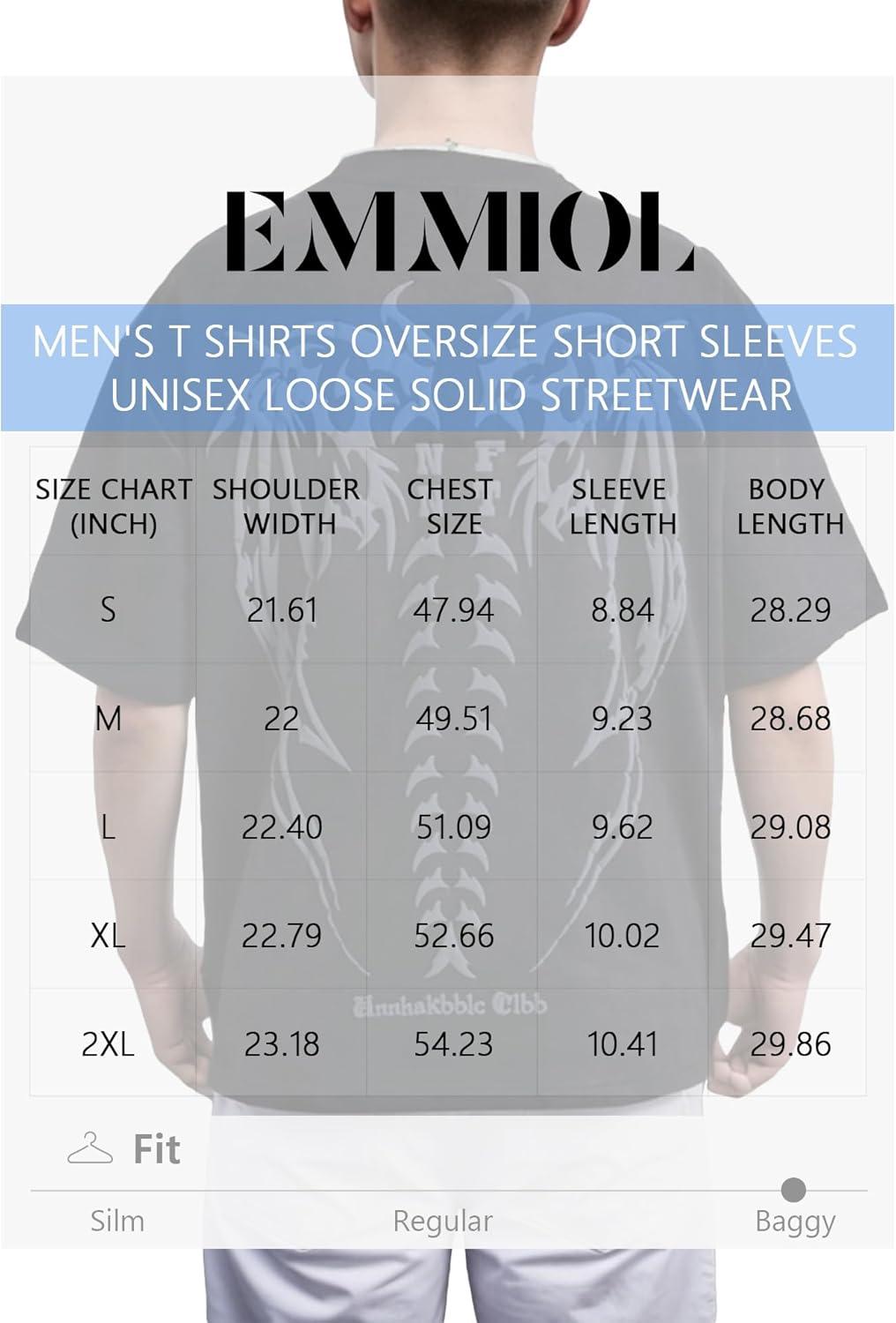 EMMIOL Mens Y2k Baggy Shirts Graphic Tees Oversized Crew Neck Short Sleeve Streetwear Tshirts Summer Tops 2025(Grey)