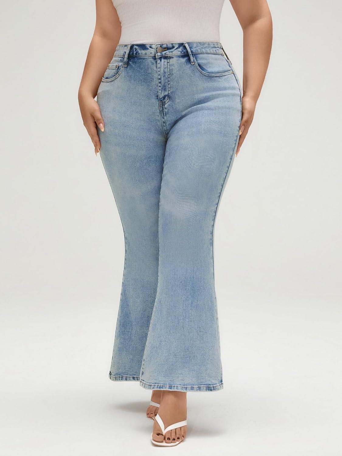 EMMIOL Stretchy Flare Jeans for Women High Waisted, Y2K Distressed Flared Denim Pants Bootcut, High Rise Elastic Waist Trendy Vintage 90s Grunge Streetwear Bell Bottoms