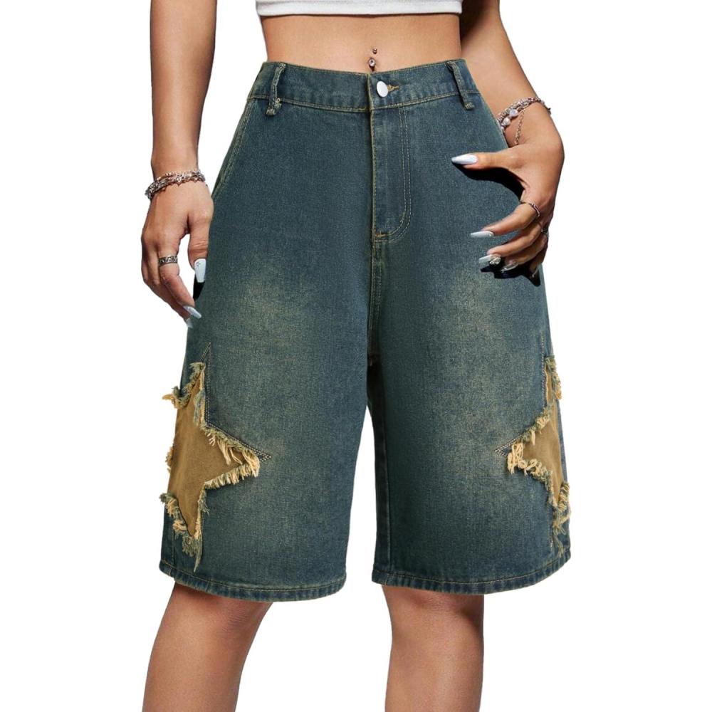 EMMIOL Women Jorts Baggy Jeans Shorts Mid-Low Waisted Denim Y2K Hip-Hop Shorts Summer Hot Short Pants Streetwear(Blue-177)